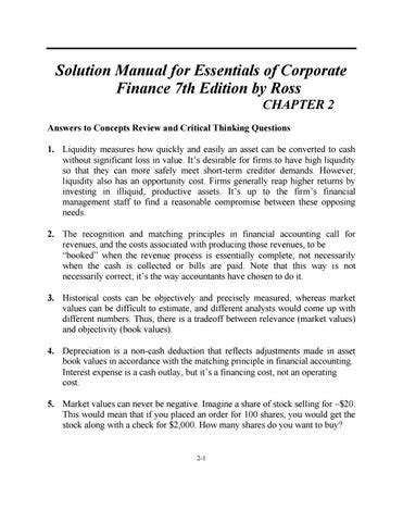 Reading Online ESSENTIALS OF CORPORATE FINANCE 7TH EDITION CHAPTER CASE SOLUTIONS iBooks ManyBooks